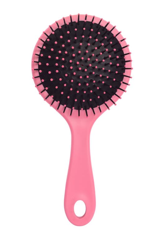 Generic - فرشاة شعر دائرية بمقبض بلاستيكي لجميع انواع الشعر - اسود وبينك