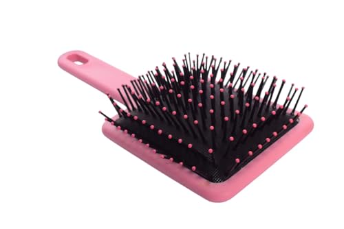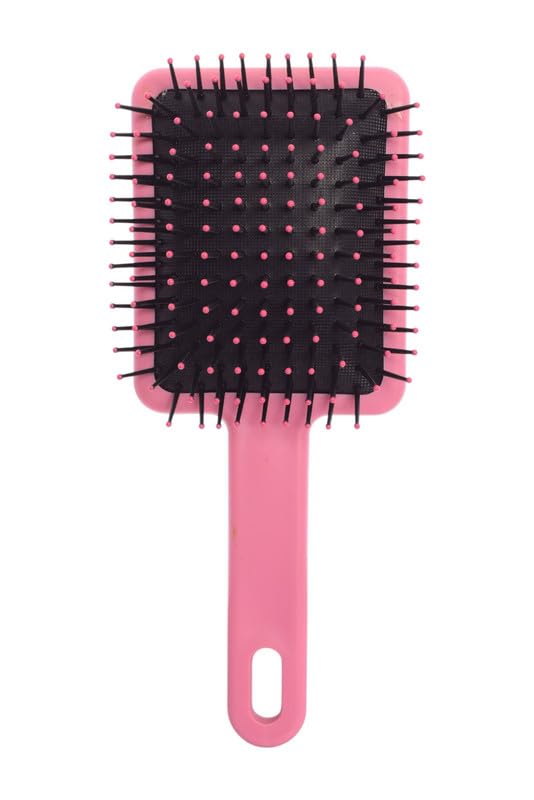 Generic - فرشاة شعر مربعة بمقبض بلاستيكي لجميع انواع الشعر - اسود وبينك