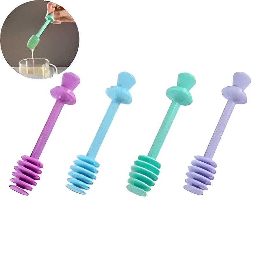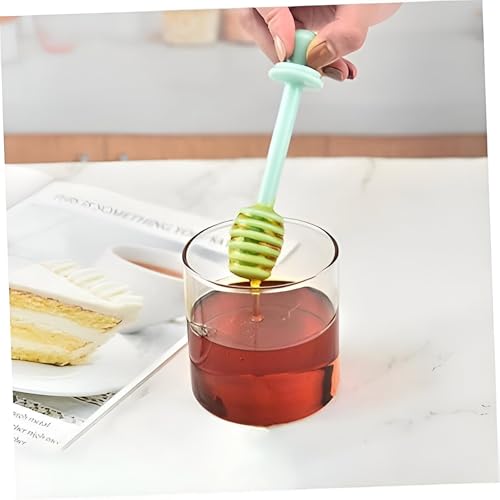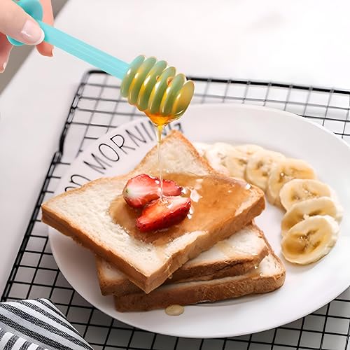 Generic - عصا عسل بلاستيكية – عصا تقليب بلاستيكية متينة مع ملعقة عسل برقبة دائرية واسعة، مناسبة لغمس العسل وخلطه وتوزيعه بالتساوي في البرطمانات، يتضمن حاملاً مدمجاً، متعدد الألوان