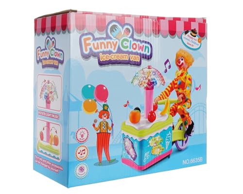 Generic - لعبة شاحنة ايس كريم مع مهرج بلاستيك تصدر اصوات و حركة و إضاءة للاطفال - متعدد الالوان