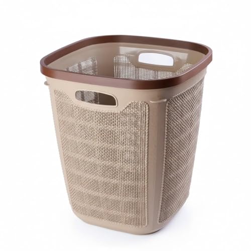 Generic - سلة غسيل بلاستيكية بتصميم الجوت، بني، 60 لتر، بمقابض وتصميم مثقوب للتهوية