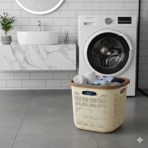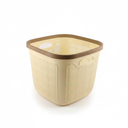 Generic - سلة غسيل بلاستيكية بتصميم الجوت، كريمي، 45 لتر، مع مقابض، لتنظيم الحمام والغسيل