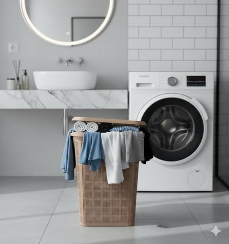 - تصميم جوتي منسوج: سلة غسيل بلاستيكية بتصميم منسوج أنيق باللون البيج يضيف لمسة عصرية لأي غرفة في منزلك