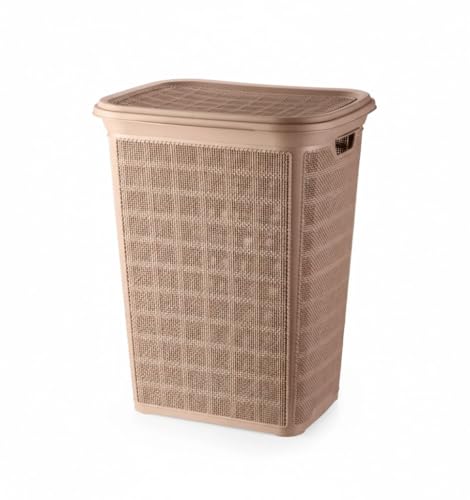 Generic - سلة غسيل بلاستيكية بغطاء، بيج، 60 لتر، 46x38x57 سم، تصميم جوتي منسوج