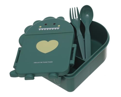 Generic - لانش بوكس محكم الغلق للأطفال والبالغين، مصنوع من البلاستيك ومقسم من الداخل مع ملعقة وشوكة، أخضر(جراس)