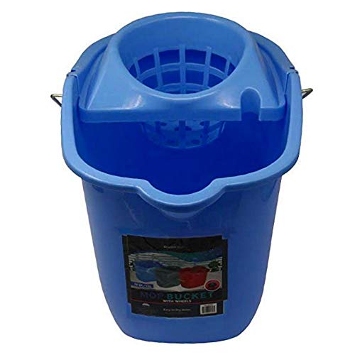 Other - جردل مساحة بلاستيكي بعصارة و 4 عجلات، لون ازرق