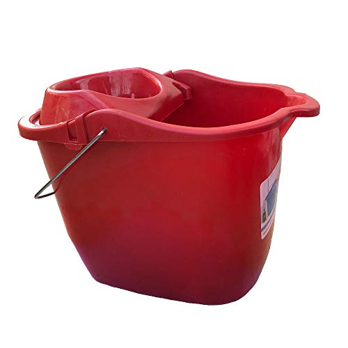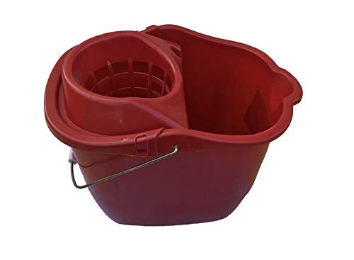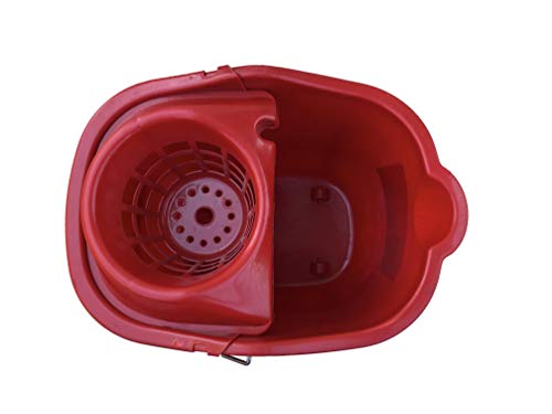 Other - جردل ممسحة بلاستيكي مع عصّارة و4 عجلات - احمر