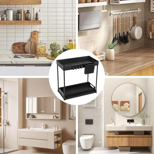Generic - منظم مطبخ وحمام متحرك بخامة بلاستيك – حجم كبير مع 4 هوك وكوب بلاستيك لتخزين أدوات التنظيف والصابون والمناديل mi