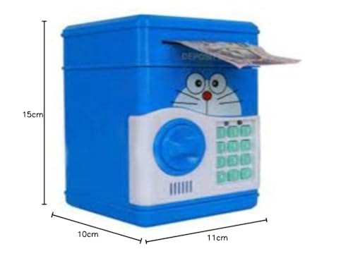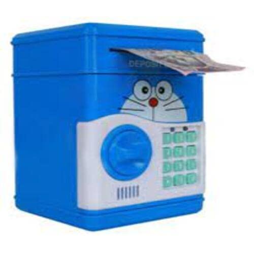 Generic - حصالة ادخار وحفظ اموال بتصميم كرتوني للقط دورايمون صغيرة خزنة الكترونية مع كلمة سر بنمط الة صراف الي ايه تي ام تبتلع النقود والاوراق النقدية مناسبة للاطفال 2724634449988