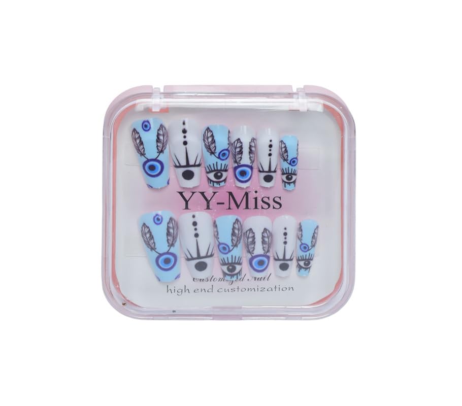 Generic - أظافر بلاستيك تثبت بالضغط بتصميم لوزي وشكل عين للبنات، طقم من 12 قطعة - متعدد الألوان - 216