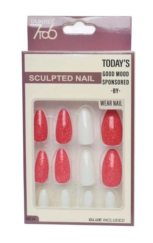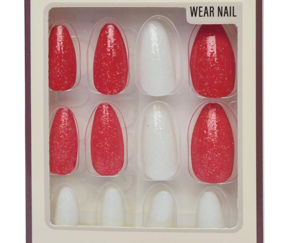 Generic - أظافر تركيب عن طريق الضغط لاصقة بلاستيك للبنات بتصميم لوزي وجليتر لامع، طقم من 12 قطعة، متعددة الألوان