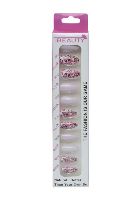 Generic - طقم أظافر تركيب عن طريق الضغط بلاستيك على شكل لوز للبنات، 12 قطعة - متعدد الألوان - 153