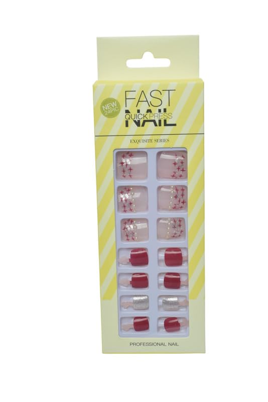 Generic - أظافر بلاستيك للتركيب عن طريق الضغط بتصميم مربع ونجوم للبنات، متعددة الألوان 24 قطعة