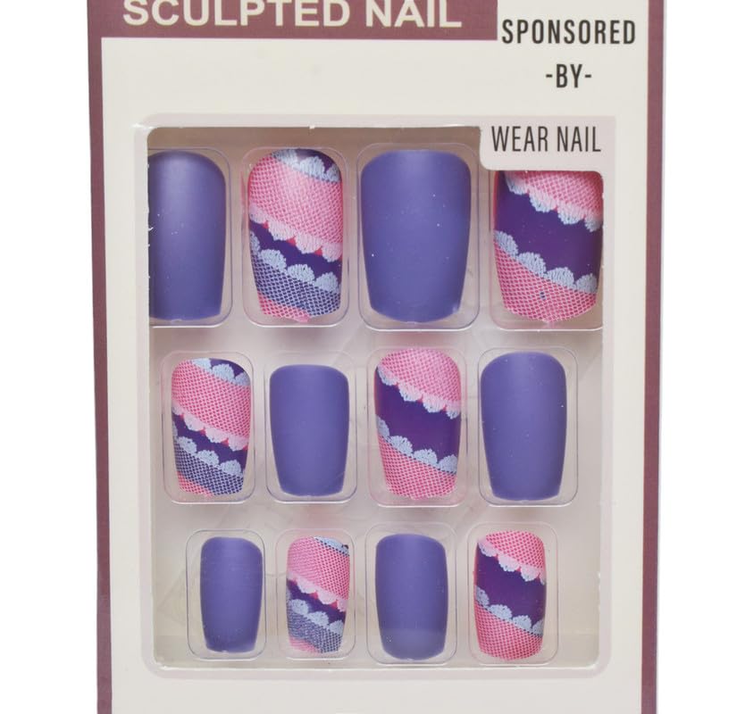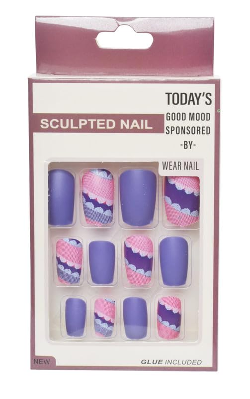 Generic - طقم أظافر بلاستيك بالضغط بتصميم سكوفال ومتعدد الألوان للبنات، 12 قطعة - متعدد الألوان - 252