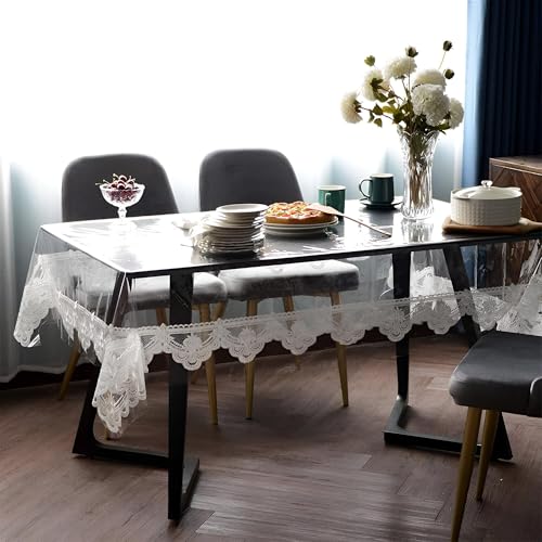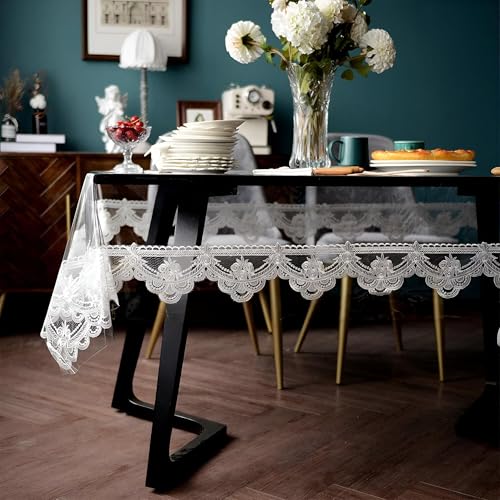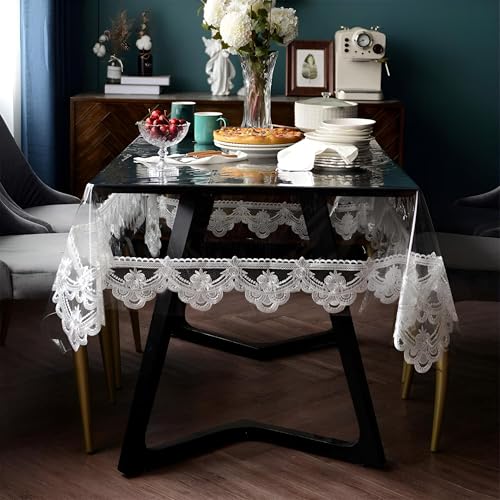 Generic - غطاء طاولة مستطيل بلاستيكي مقاوم للماء والزيت للاستخدام مرة واحدة، تصميم دانتيل مذهل مثالي لتزيين المطبخ وحفلات الزفاف (أبيض شفاف، 140 × 220 سم)