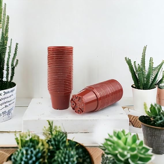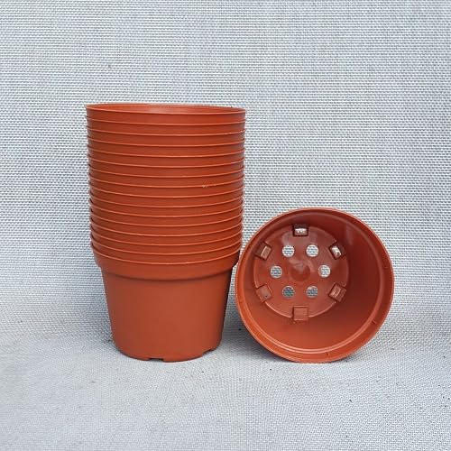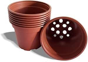 Generic - اناء زهور دائري بلاستيك , وعاء نبتات ، اصيص نبات، لون بني محمر 10 قطع (16)