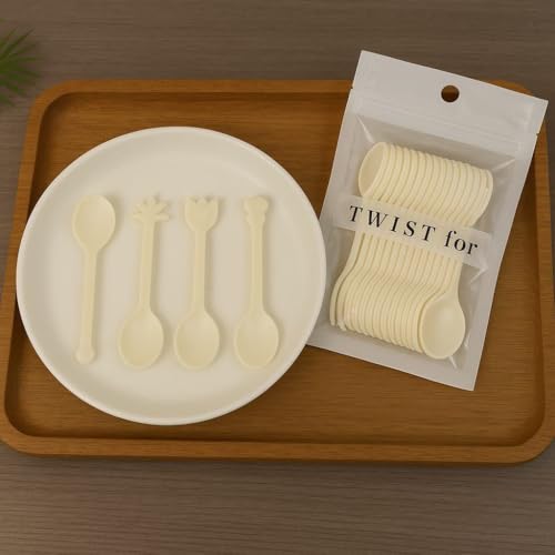 Generic - طقم ملاعق بلاستيكية صغيرة 20 قطعة – تصميم نباتات لطيف – ألوان متعددة – للمشروبات والحلويات والمناسبات (بيج)