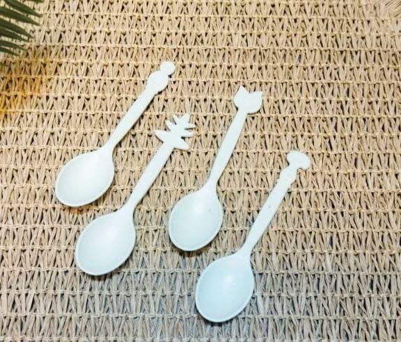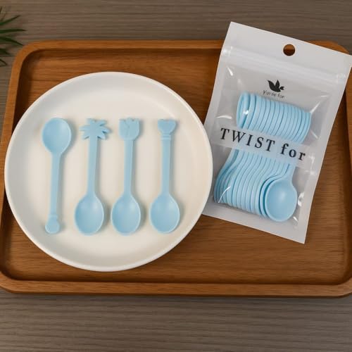 Generic - طقم ملاعق بلاستيكية صغيرة 20 قطعة – تصميم نباتات لطيف – ألوان متعددة – للمشروبات والحلويات والمناسبات (لبنى فاتح)
