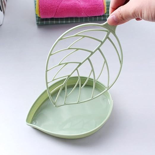 Generic - حامل صابون بلاستيك، تصميم ورقة شجر، أسود وأبيض، للحمام والمطبخ