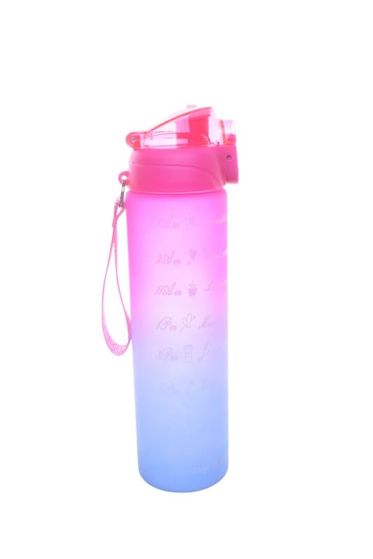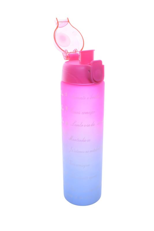 Generic - زجاجة رياضية بلاستيكية، 1000 مل، بينك وازرق