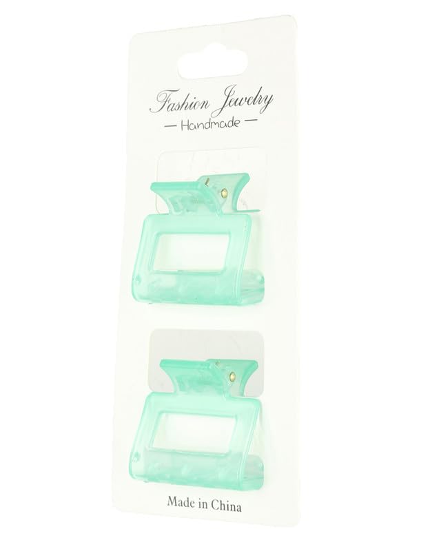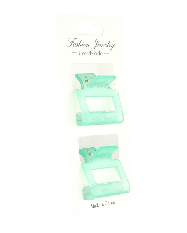 Generic - مشابك شعر من البلاستيك بشكل مربع للنساء، قطعتان في العبوة، أخضر مينت