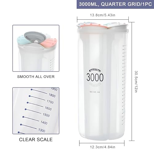 Generic - صندوق تخزين بلاستيكي - حاوية عملية مع 4 مساحات تخزين لتنظيم وتوزيع أنواع مختلفة من الحبوب بكفاءة، 2.8 ل