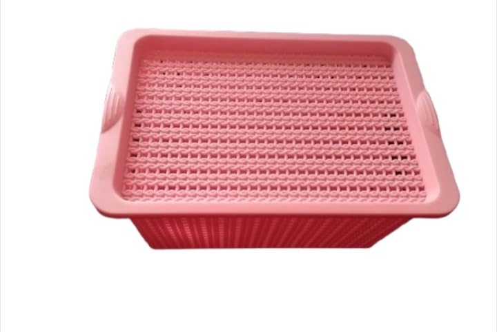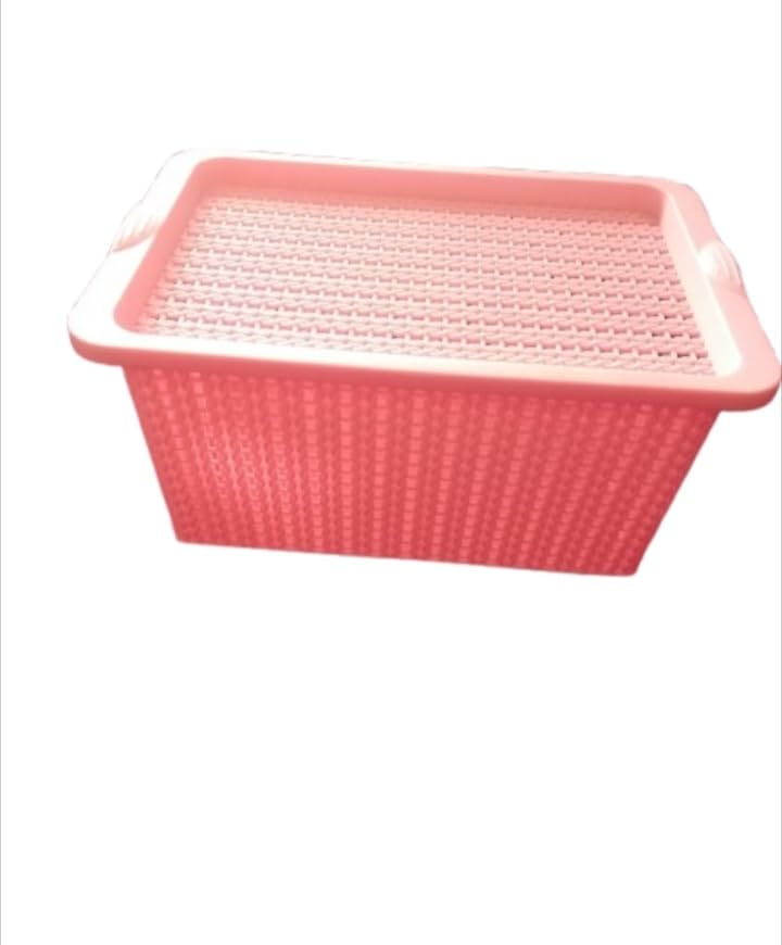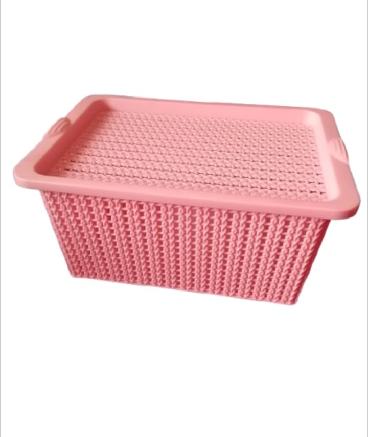 Generic - صندوق تخزين بلاستيك بغطاء لون بمبي عرض28 طول13 عمق15