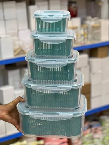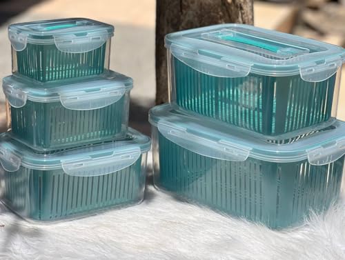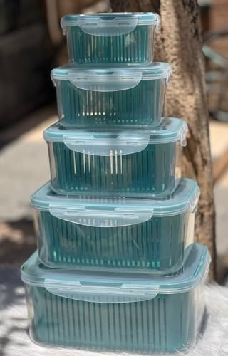 Generic - طقم علب بلاستيك للتخزين، ٥ قطع متدرجة الحجم، أغطية محكمة، لون أخضر فيروزي