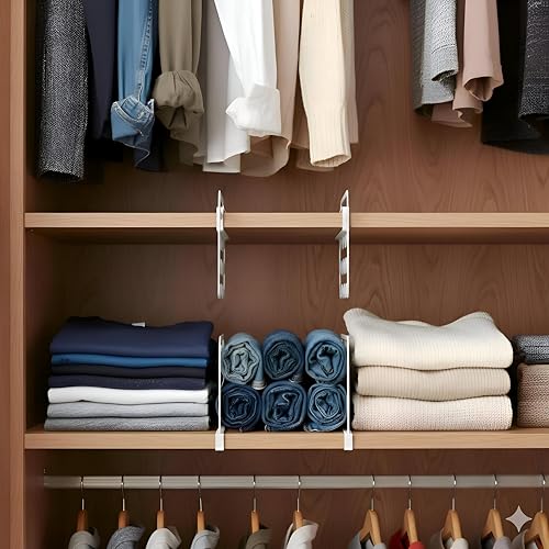 - بالإضافة إلى التقسيم، يعمل كرف تعليق متعدد الاستخدامات للأوشحة أو المناشف أو اللوازم الحرفية، مما يزيد من مساحة الخزانة مع فائدة مزدوجة الأغراض.