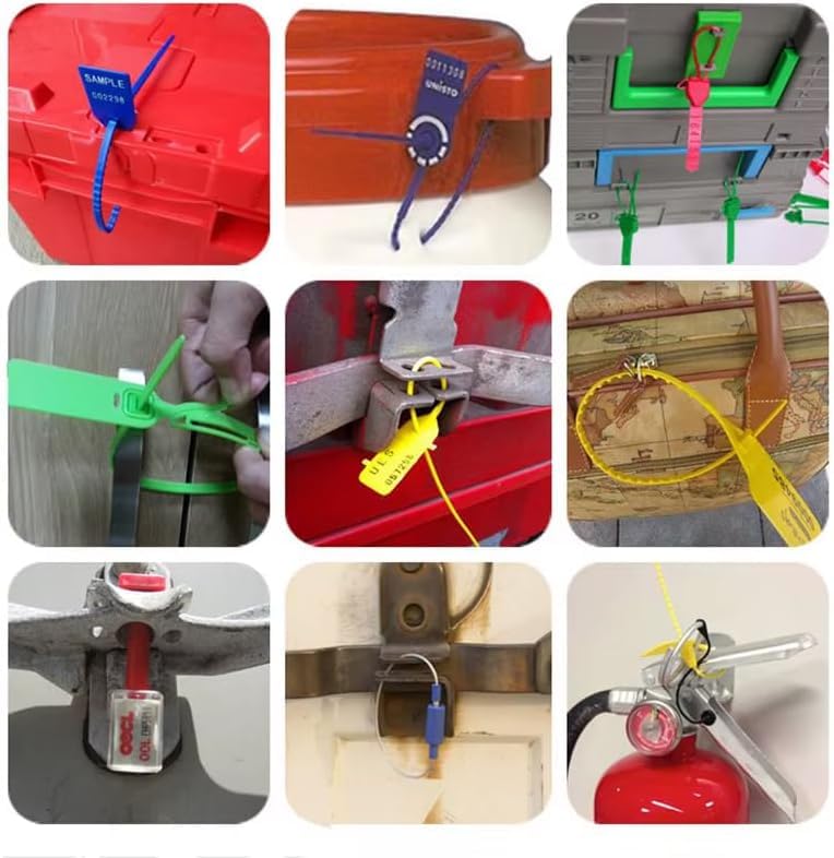 - ✅سدادات إرشادية بنقاط قفل مزدوجة لمزيد من السلامة، اربطة امان مرقمة شديدة التحمل، اربطة بلاستيكية مقاومة للعبث مع ربطة سلكية، ملصق امان لوجستيات نقل الامتعة