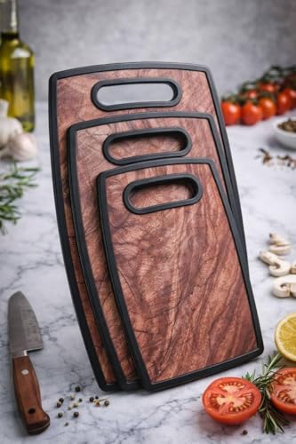 Generic - طقم بلانشة بلاستيك ثلاث قطع بتصميم خشبي فاخر بمقاسات متنوعة للتقطيع والتقديم اليومي وتنظيم المطبخ بطريقة عملية وسهلة لجميع المهام