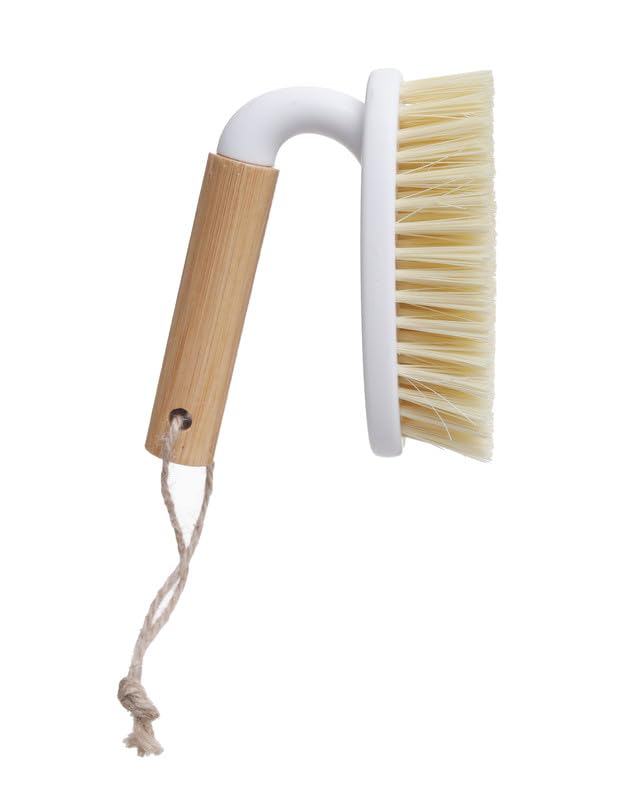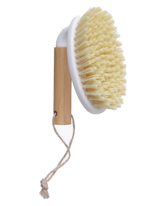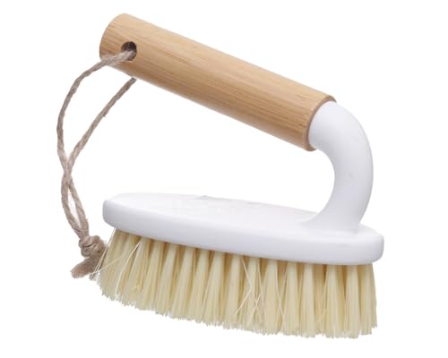 Generic - فرشاة تنظيف بلاط بلاستيك بمقبض خشب مقاس مقاس 12 × 6 سم - ابيض و بيج