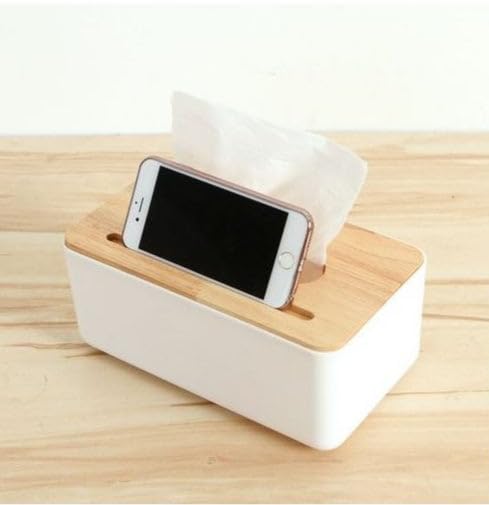 Generic - علبة مناديل بلاستيك مع غطاء خشب وفتحة للموبايل- علبة مناديل ورقية متعددة الوظائف للمنزل والمكتب