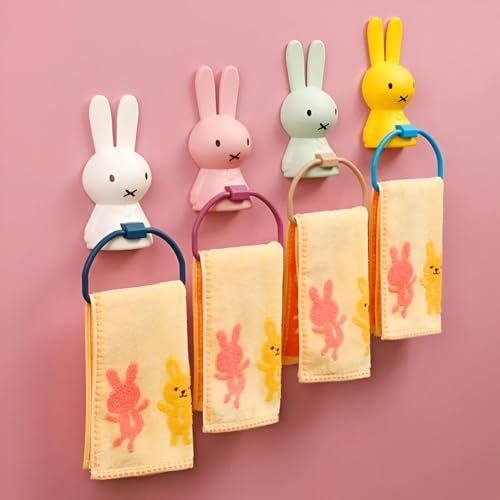 Generic - رف مناشف بلاستيك - نمط ارنب كرتوني بالوان جذابة، مقاوم للماء، سهل التركيب ولا يحتاج الى ادوات