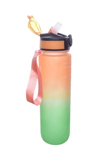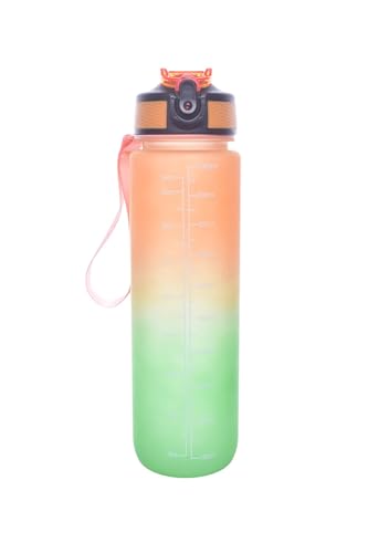 Generic - زجاجة مياه بلاستيكية، لتر واحد - برتقالي وأخضر