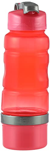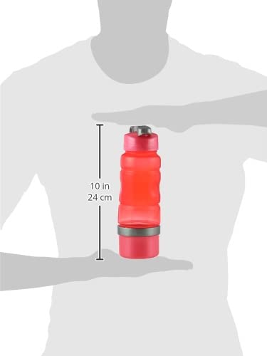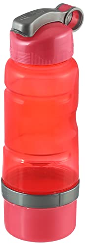 Generic - زجاجة مياه بلاستيك مع كوب - احمر ورمادي