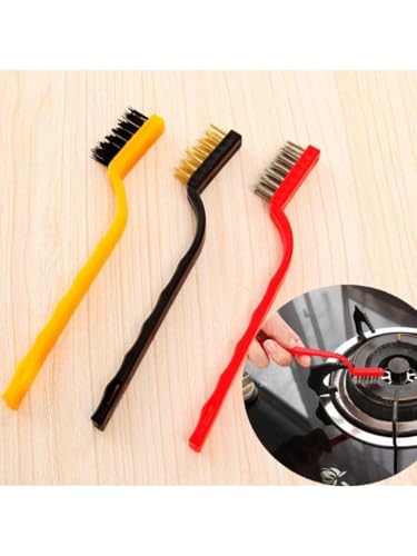 Generic - فرشاة سلكية بلاستيكية لتنظيف موقد الغاز وأدوات المطبخ: مجموعة متعددة الألوان مكونة من 3 قطع للتطهير القوي والتنظيف العميق للفجوات الصغيرة باستخدام الألياف المعدنية, متوفر حصريا فى 🏅 امازين