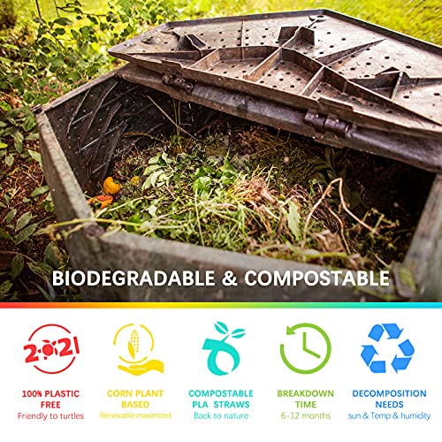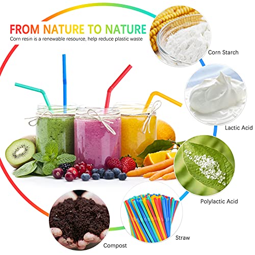PTHANN - شفاطات شرب للاستعمال مرة واحدة صديقة للبيئة خالية من البلاستيك ملونة ومرنة وقابلة للانحناء من الذرة العضوية القابلة للتحلل البيولوجي للحفلات والسفر بطول 21 سم من 100 قطعة