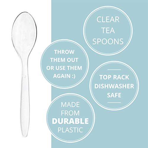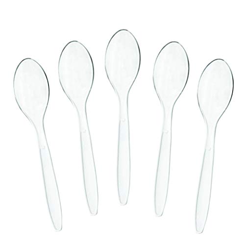 - معالق شاي من بلاستيك شفاف ديلوكس بنمط ثقيل الوزن، بتصميم مثالي للاستخدام اليومي أو الحفلات، حفلات الزفاف أو المناسبات وغيرها، 100 قطعة من بلاستيك برو.