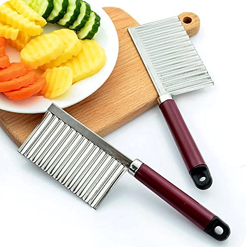 plastific - قطاعة بطاطس من الفولاذ المقاوم للصدأ بشفرة مموجة من بلاستفيك، مناسبة لتقطيع رقائق البطاطس المقلية، أداة مطبخ للطهي والخضروات والفواكه (1 × قطاعة مموجة بلون نبيتي)