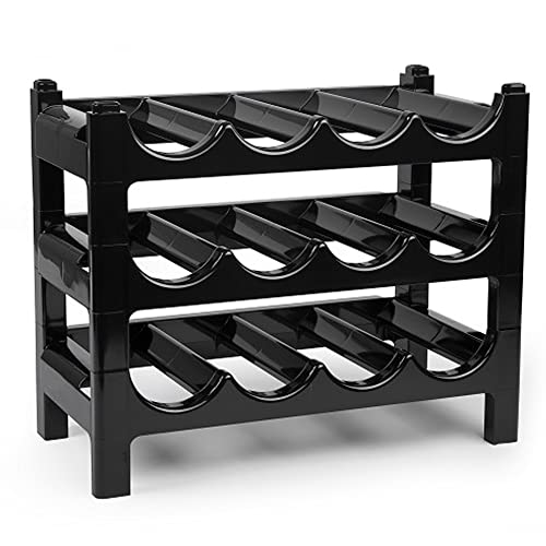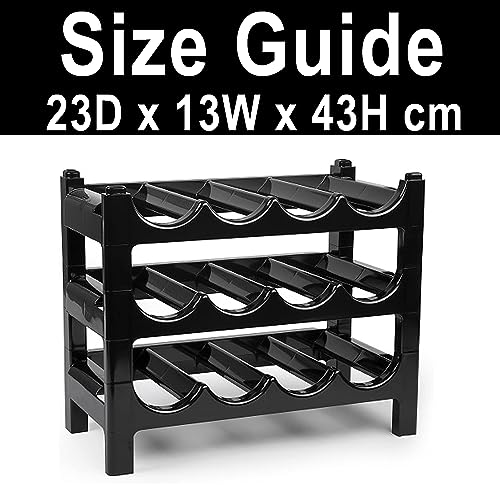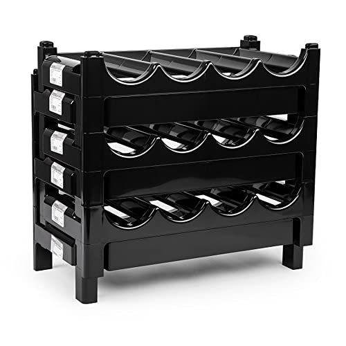 plastific - رف تخزين زجاجات قابل للتكديس، حامل زجاجات لأسطح العمل والمخازن والثلاجات، رف تخزين قائم بذاته قابل للطي لسطح الطاولة من بلاستفيك، (رف 18 زجاجة - أسود)