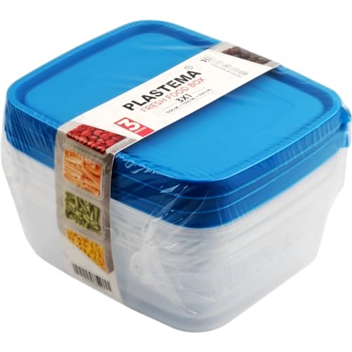 plastima - حاويات تخزين منزلية من بلاستيما (أزرق) سعة 1 لتر، ثلاث قطع