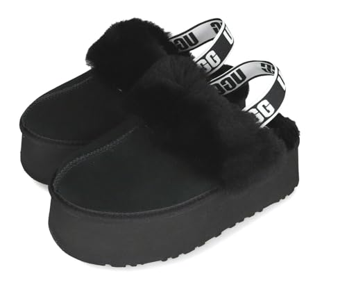 Generic - صندل بنعل سميك - حزام خلفي انيق للنساء مع حواف من الفرو الصناعي بلون بيج داكن، نعل عروة مكتنز للازياء الكاجوال والراحة (اسود، 38)