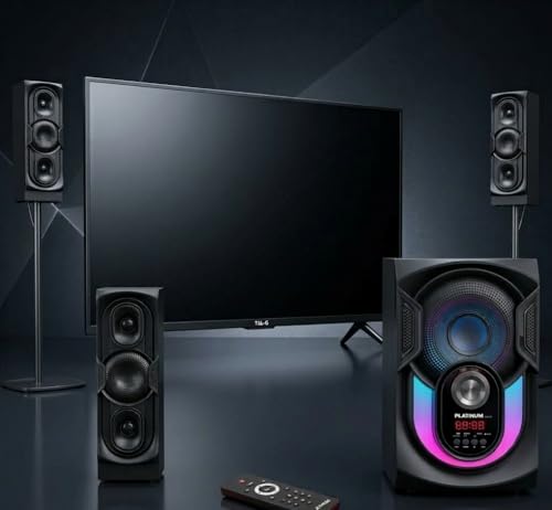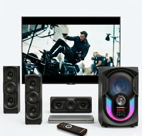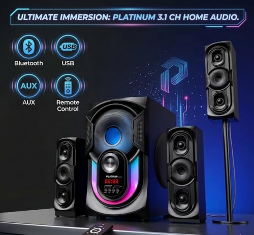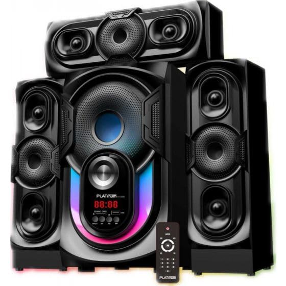 عام - نظام مكبر صوت مضخم صوت منزلي من بلاتينيوم 2.1 قناة 70 واط مع بلوتوث وUSB ومدخل AUX واضاءة LED وجهاز تحكم عن بعد - 4 وحدات - AH-6080