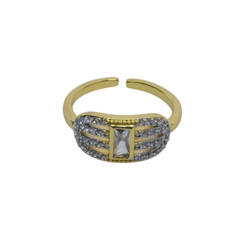 Generic - خاتم بلاتينيوم باجيت وبافيه قابل للتعديل للنساء، مقاس واحد - ذهبي