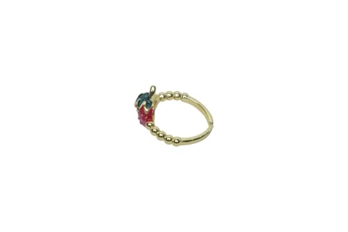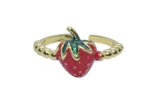 Generic - خاتم عريض مطرز بشكل الفراولة من البلاتين للنساء، مقاس واحد، ذهبي