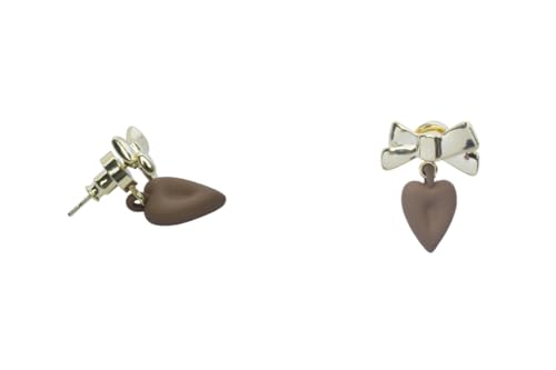 Generic - اقراط متدلية على شكل فيونكة وقلب بني مات للنساء من بلاتينيوم - ذهبي