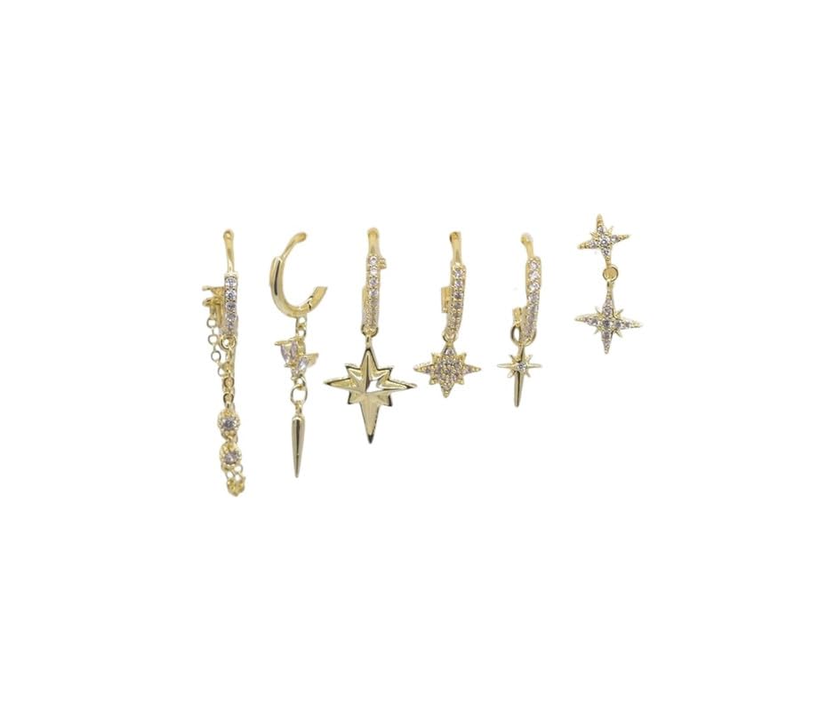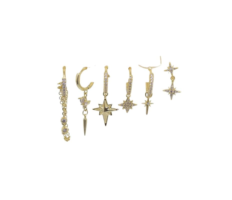 Generic - طقم اقراط سيليستيال سبايك للنساء من بلاتينيوم - 6 قطع