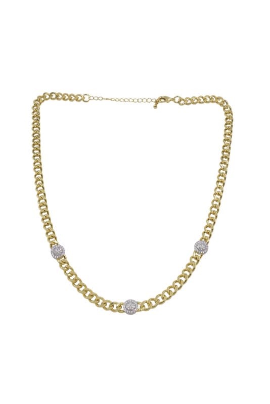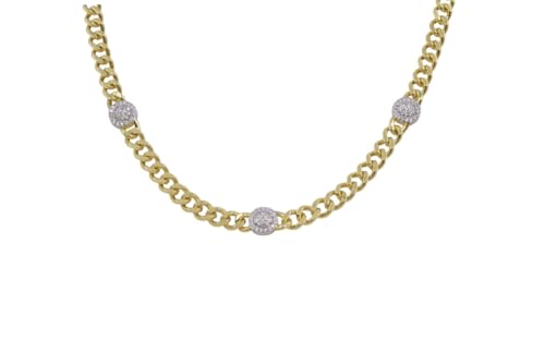 Generic - سلسلة بحلقات كوبية من البلاتين مع محطات احجار كريمة مرصوفة للنساء - ذهبي
