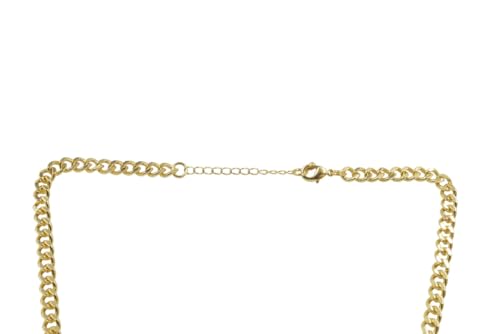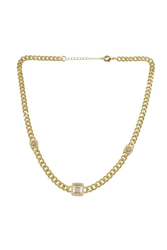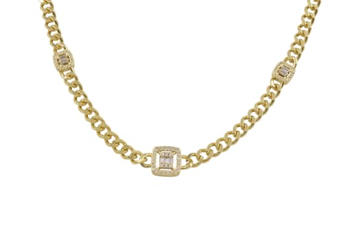 Generic - سلسلة بحلقات كوبية من البلاتينيوم مع ثلاث محطات مرصوفة مربعة للنساء - ذهبي